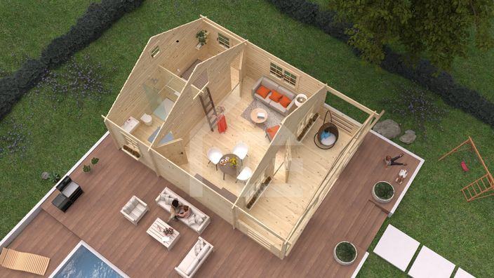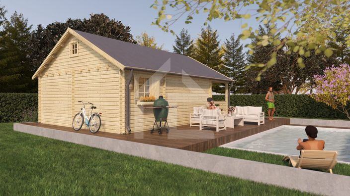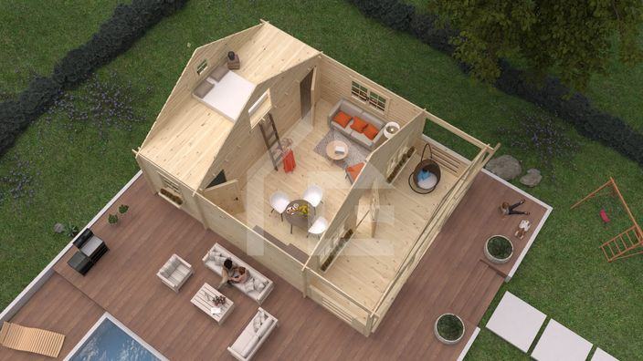 DRVENA VRTNA KUĆICA GL 13 (6,00m x 7,80m, 44mm) 35 ㎡ + 12 ㎡ terasa