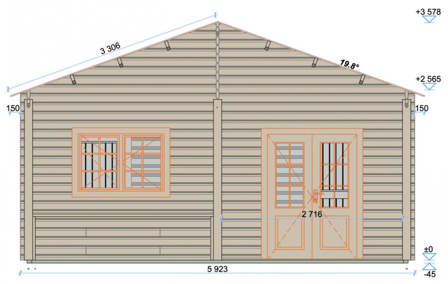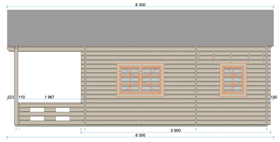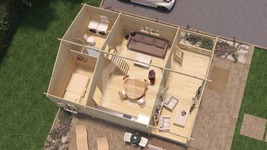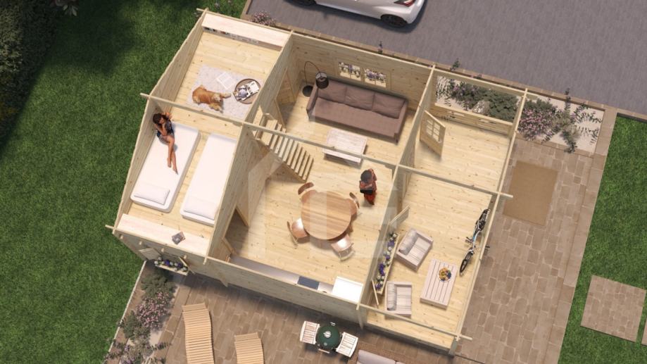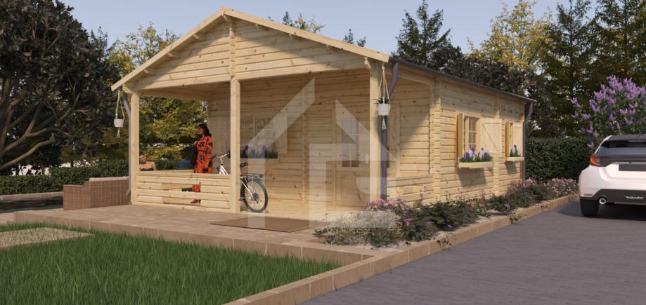DRVENA VRTNA KUĆICA GL 16A (5,90m x 8,10m, 44mm) 35 ㎡ + 12 ㎡ terasa