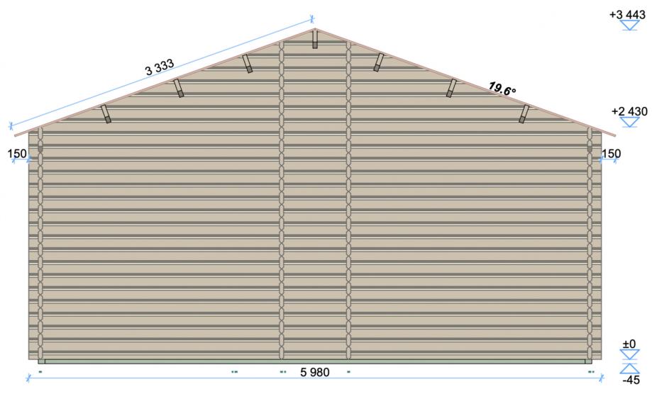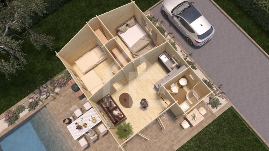DRVENA VRTNA KUĆA GL 17 (6,00m x 7,50m, 44mm) 43 ㎡ + 2 ㎡ terasa
