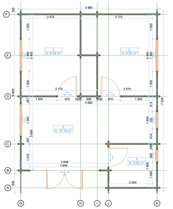 Kuća je veoma čvrsta i stabilna jer je izrađena od profiliranih, fino obrađenih smrekovih daski debljine 44 mm.