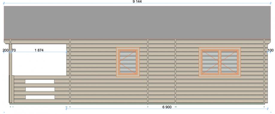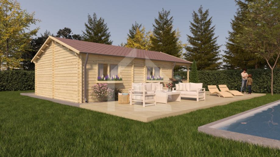 DRVENA VRTNA KUĆICA GL 18A (9,10m x 6,00m, 44mm) 41 ㎡ + 12 ㎡ terasa