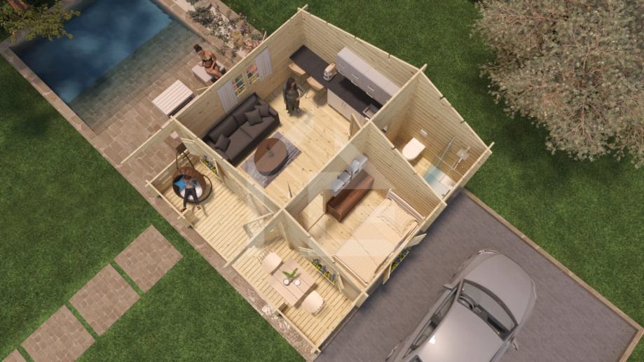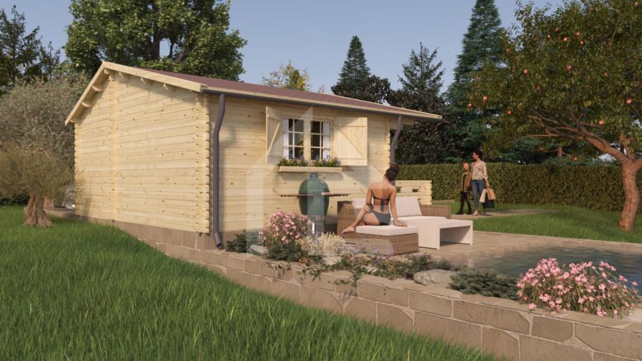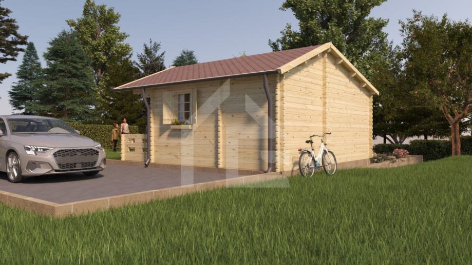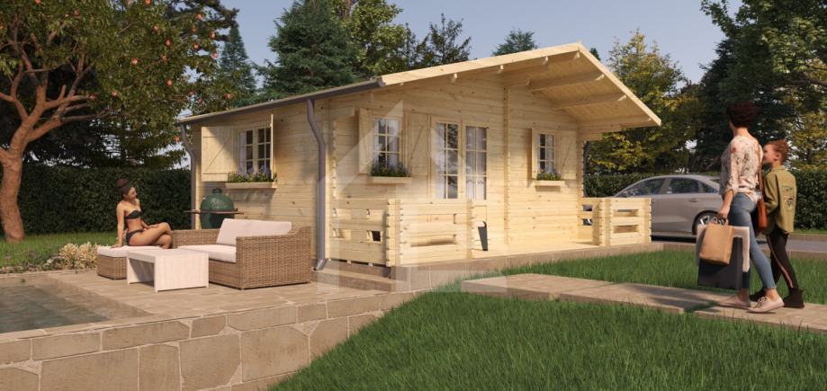 To je prostrana drvena kuća, s 24 četvornih metara korisnog prostora i 8 četvornih metara vanjske verande koja se može prilagoditi vašim željama.