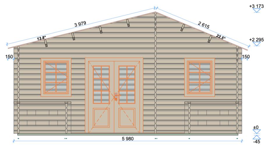 Kuća je veoma čvrsta i stabilna jer je izrađena od profiliranih, fino obrađenih smrekovih daski debljine 44 mm.