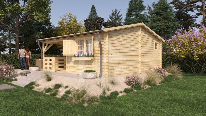 To je drvena vrtna kućica površine 24 četvornih metara korisne površine + trijem od 9 četvornih metara.