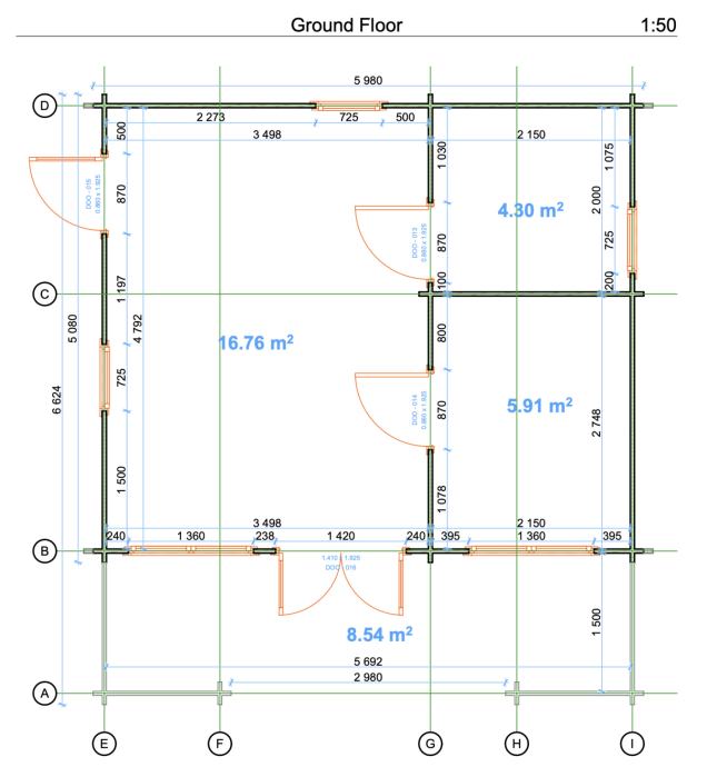 Kuća je veoma čvrsta i stabilna jer je izrađena od profiliranih, fino obrađenih smrekovih daski debljine 44 mm.
