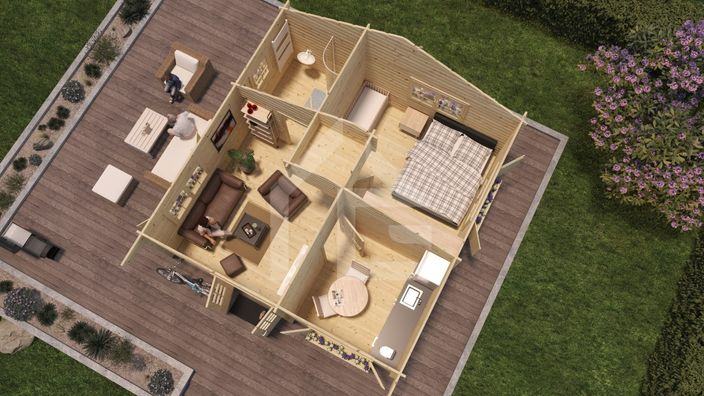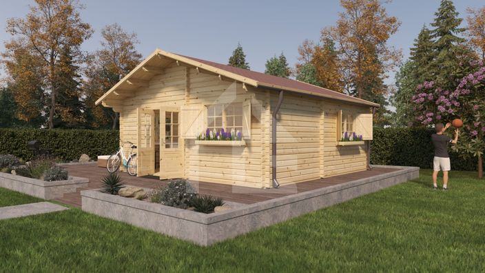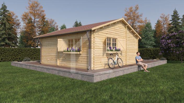 To je kućica, veličine 32 četvornih metara korisne površine, idealan je izbor za one koji traže prostranu drvenu kuću, izrađenu od visokokvalitetnog drva, gostoljubivu i iznimno svestranu.