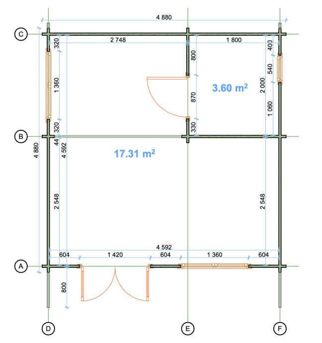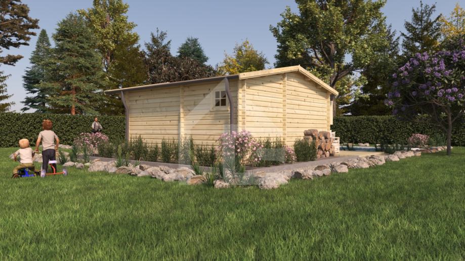 Riječ je o objektu od nordijske jele, površine 21 četvorna metra korisne površine sa dvovodnom krovom.