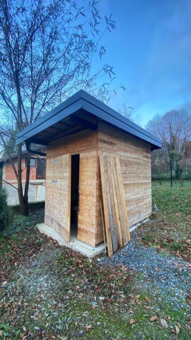 Prodajemo drvenu vrtnu kućicu za alat dim. 2,20x2,90x2,60 m.