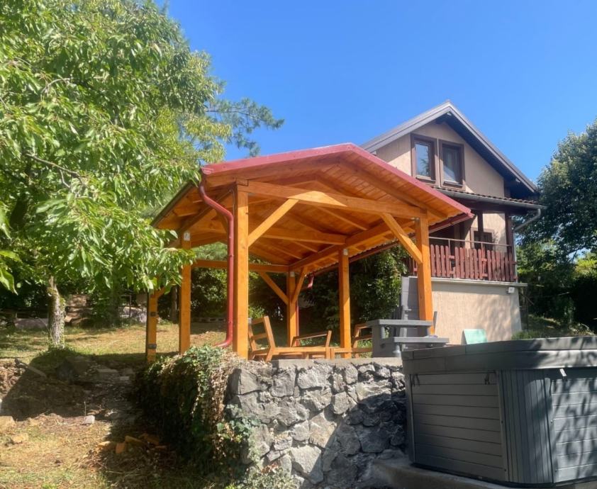 Konstrukcija je izrađena od kvalitetnog drva, a može se kombinirati s različitim vrstama krovnog pokrova ovisno o željama. Bilo da se radi o slobodnostojećoj pergoli u vrtu ili nadstrešnici prislonjenoj uz objekt, svaki projekt prilagođavamo specifičnim uvjetima i željenom izgledu.