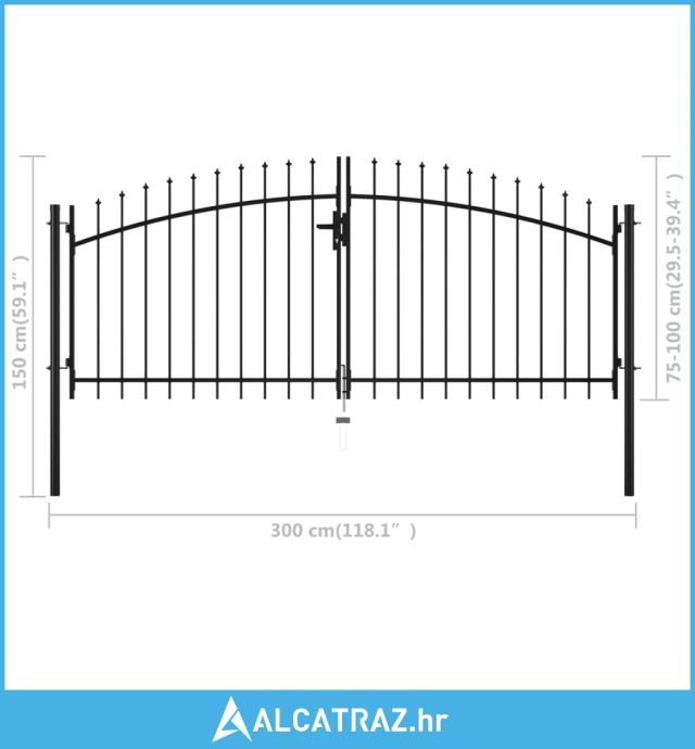 Dvostruka vrata za ogradu s kopljima na vrhu 300 x 150 cm - NOVO