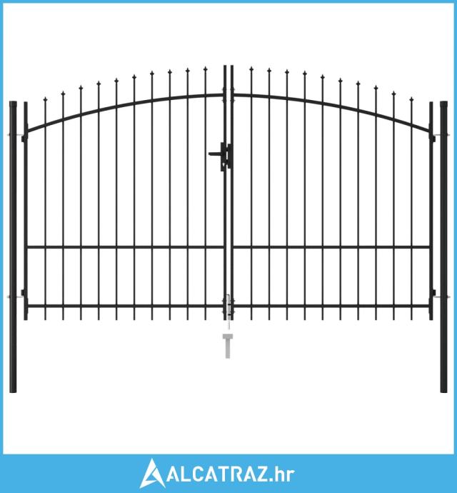 Dvostruka vrata za ogradu sa šiljcima na vrhu 3 x 1,75 m crna - NOVO