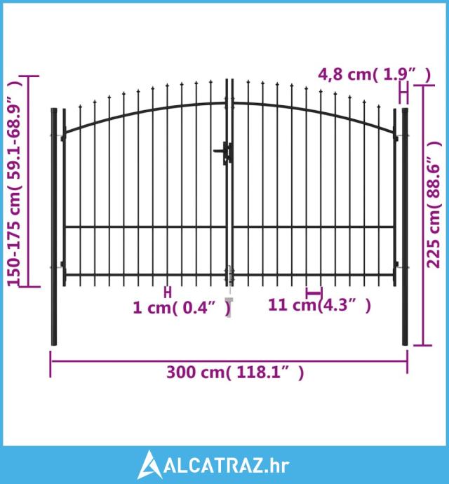 https://www.alcatraz.hr/trgovina/dvostruka-vrata-za-ogradu-sa-siljcima-na-vrhu-3-x-175-m-crna/