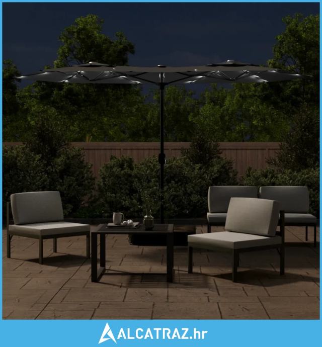 Dvostruki suncobran s LED svjetlima antracit 316 x 240 cm - NOVO