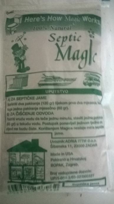 Septic magic, eko sredstvo u prašku za čišćenje i otklanjanje mirisa septičkih jama i odvoda (brodice, kamperi, kamp prikolice).