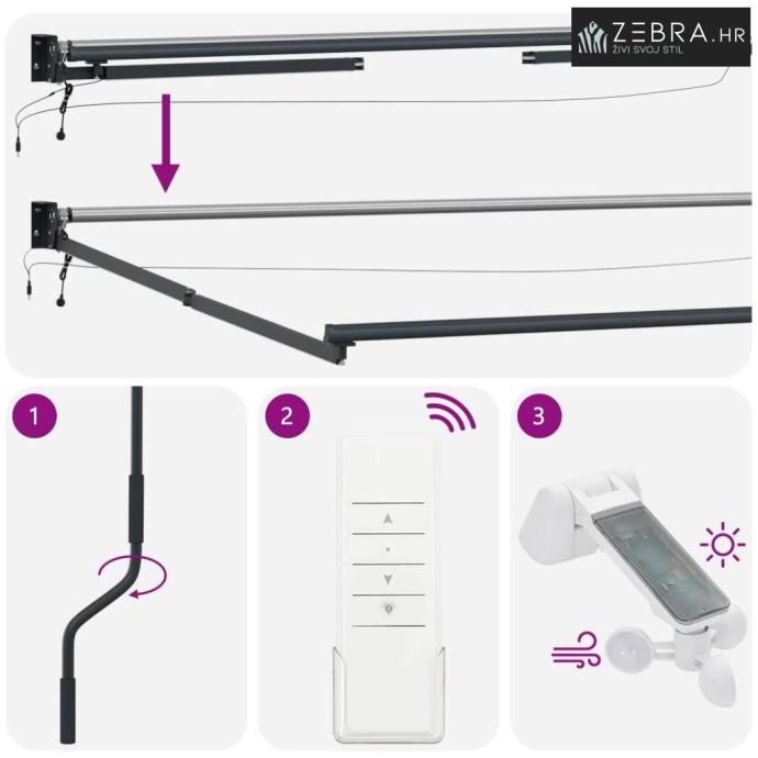 1 x Električna sklopiva tende s LED-ima i senzorom za vremenske