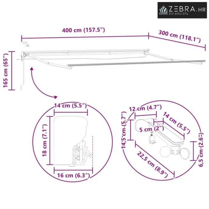Veličina tkanine tende: 3,8 x 2,95 m (d x š)