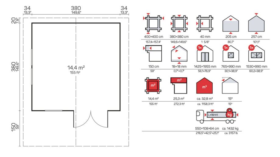 Dimenzije zidova (širina x dužina): 380 x 380 cm