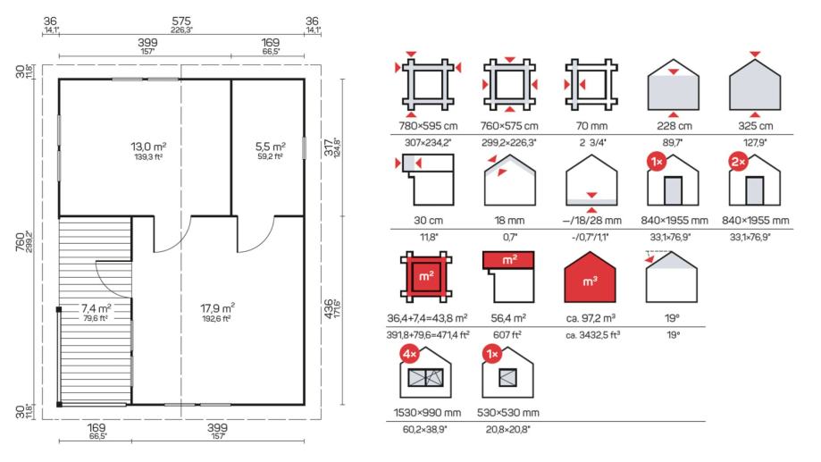 Set Maridinih drvenih kuća debljine 70 mm uključuje sljedeće: