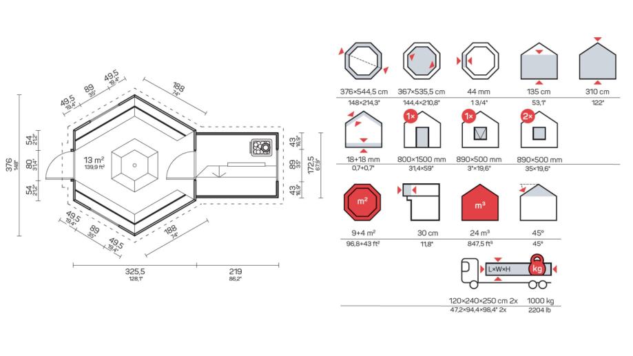 Set drvenih roštilj kućica debljine 44 mm uključuje sljedeće: