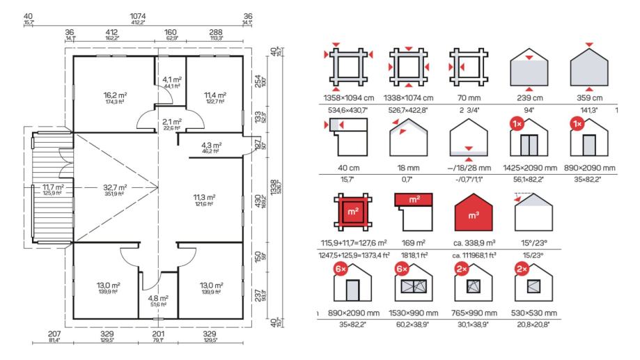Set Maridinih drvenih kuća debljine 70 mm uključuje sljedeće: