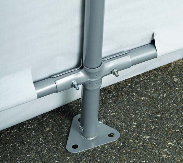 8 pričvršćenih traka za pričvršćivanje osigurava čvrstoću cerade na okviru pri vjetru i vremenu. Opseg isporuke uključuje 4 sidra (38 cm) za sigurno pričvršćivanje u tlo. Nije potreban temelj.