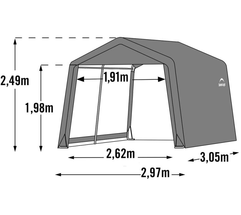 Bilo da se radi o kanti za smeće, drvima, kolicima, vrtnim alatima, biciklima, kosilicama ili slično, sve ovdje ima svoje mjesto. Spremište alata može se brzo postaviti i skinuti - idealno za sezonsku i cjelogodišnju upotrebu. Visokokvalitetna polietilenska cerada (210 g/m²) otporna je na UV zračenje i potpuno je vodootporna zahvaljujući posebnoj brtvi. Čvrsti čelični okvir od 3,5 cm s vrhunskim premazom sprječava hrđu i osigurava dug radni vijek. U ulaznom dijelu nalaze se vrata (ŠxV - 260x190cm) sa 2 patentna zatvarača i gumicama za kopčanje. 8 pričvršćenih traka za pričvršćivanje osigurava čvrstoću cerade na okviru pri vjetru i vremenu. Opseg isporuke uključuje 4 sidra (38 cm) za sigurno pričvršćivanje u tlo. Nije potreban temelj. Pakirano u samo jednoj kutiji.