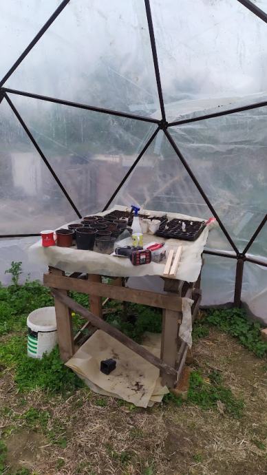 Plastenici i konstrukcije na slikama su kroz faze rada i montaže. Folija na slici je stara i spajana iz više komada.