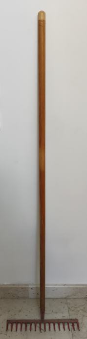 Grablje Gardol, radna širina 40 cm, duljina drške 150 cm, od čelika i drveta, lakirano. Korišteno, ali dobro očuvano. Cijena 90 kn.