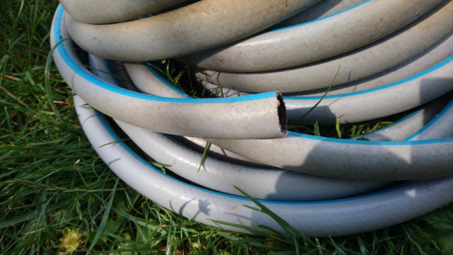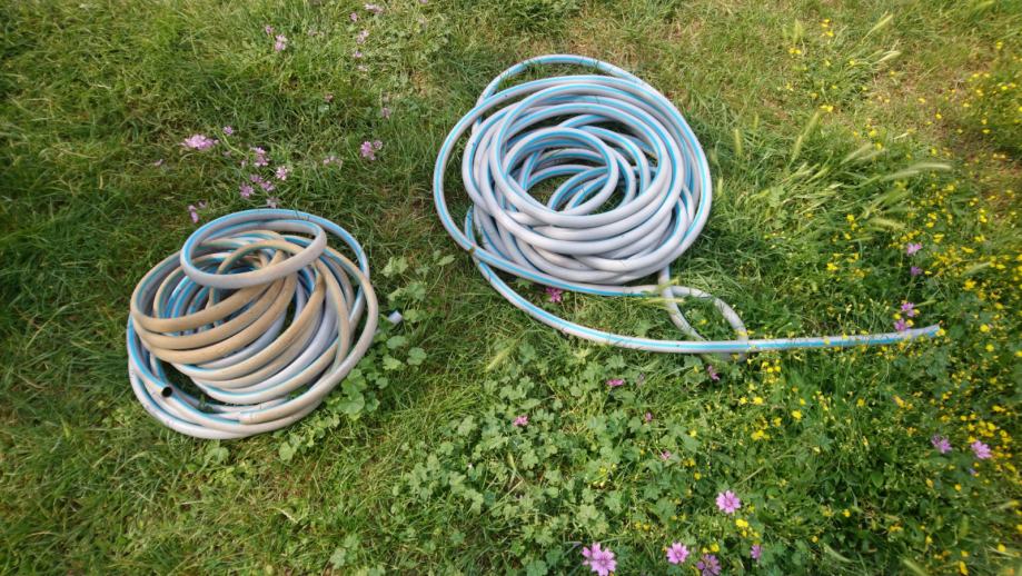 Cijev od gume za vrtnu spinu, 2 komada cca 10m duzine. Jedna malo spaljena od sunca s jddne strane, ne pusta. Prodaju se zbog nekoristenja.