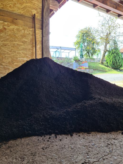 OPG Razum iz Gornje Stubice prodaje vjerojatno najfinije presijan humus na tržištu. Pakiramo u vreće od 50 litara. Cijena vreće humusa od 50 litara je 14 €.