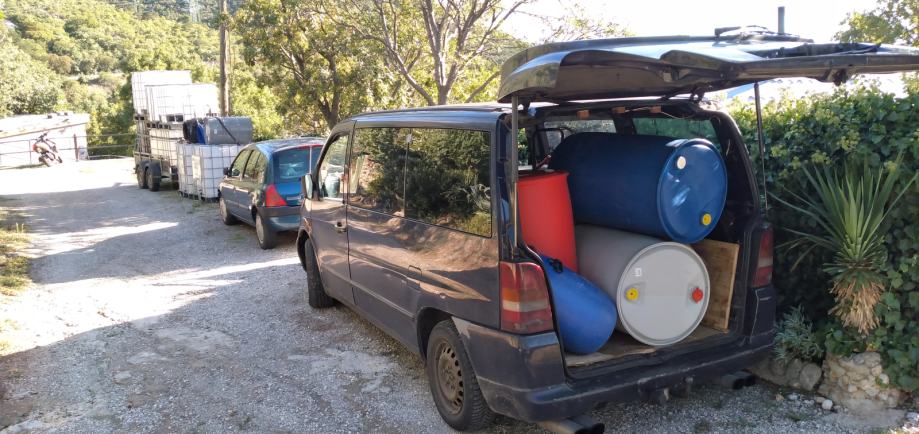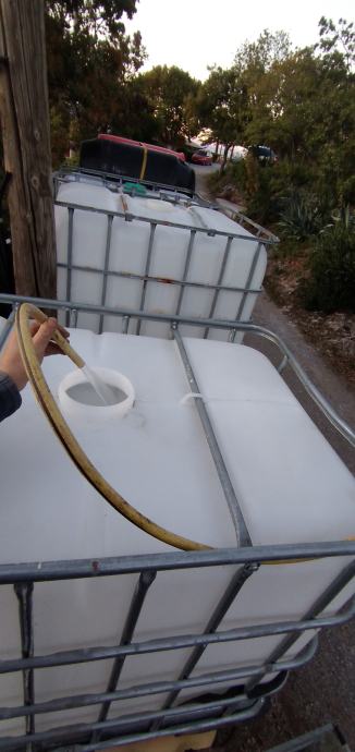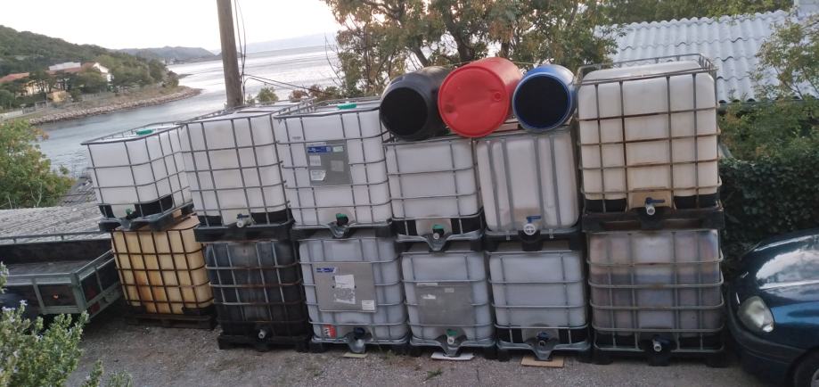 ## rezervoar, kontejner, rezervar, šterna, kontenjer, IBC plastični spremnik, spremnici, cisterna za vodu, spremnik il' ti tank za navodnjavanje- 1000 lit. (max.1080 lit.) u metalnom okviru/kavezu100X120x115cm (ŠxDxV-širina,dužina,visina)-bez kaveza od 25-35€/kom u metalnome kavezu od 45€ na više- ovisi kako koji nisu svi isti, poluprozirno bijeli te neprozirni crni ili bijeli (antifouling) u kojima se ne stvaraju alge uslijed fotosinteze radi dugotrajnog izlaganja sunčevoj svjetlosti, neki su korišteni u prehrambenoj industriji i imaju oznaku vilica/čaša na sebi PE-HD što je oznaka da su za prehrambenu namjenu; neki su dodatno zaštićeni od mehaničkog oštećenja ujedno i sunčeve svjetlosti koji su skroz obučeni u lim; znam imati i neoprane te oprane koje su 15-ak € skuplji, na drvenoj paleti, pocinčanoj ili plastičnoj; usluge dostave po potrebi i dogovoru;