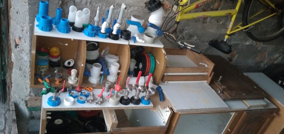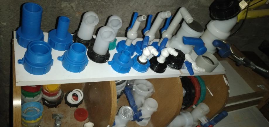 imam dakle razno kao npr. -manji čep cca 60mm sa pripadajućom brtvom i reducirani urezan navoj za 1 col, 3/4 cola i 1/2 cola slavinu (pipu, špinu) 6€/kom., zatim nastavci 3/4" i 1/2" za brze spojnice vrtno crijevo cca 1-2 €