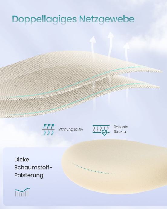 Visoka udobnost: Dvoslojna mrežasta tkanina je izdržljiva i prozračna; zakrivljeni jastuk sjedala s debelim pjenastim punjenjem je elastičan i smanjuje pritisak na bokove.