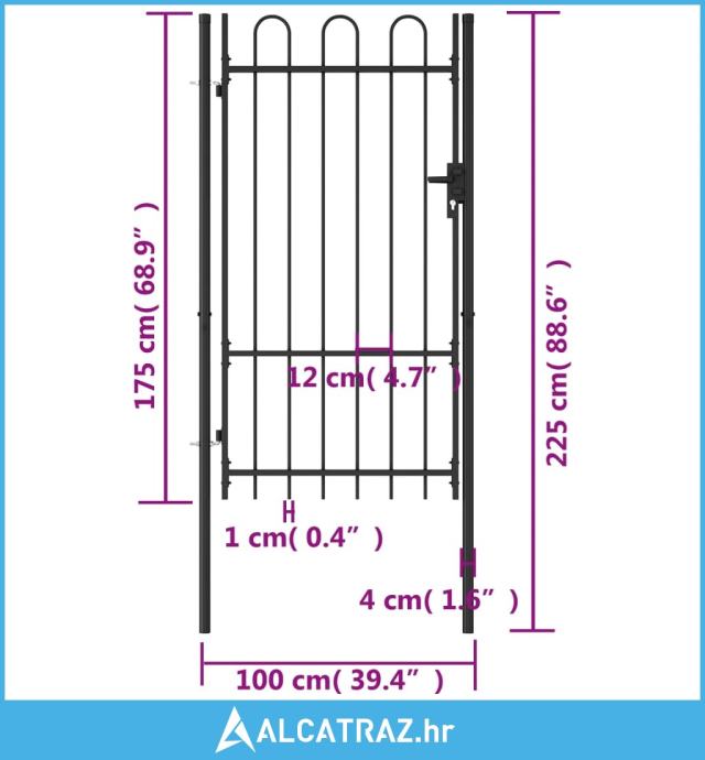 https://www.alcatraz.hr/trgovina/jednostruka-vrata-za-ogradu-s-lucnim-vrhom-1x175-m-celik-crna/