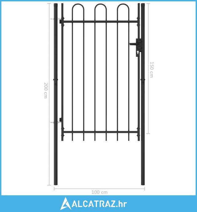 Jednostruka vrata za ogradu s lučnim vrhom čelična 1x1,5 m crna - NOVO