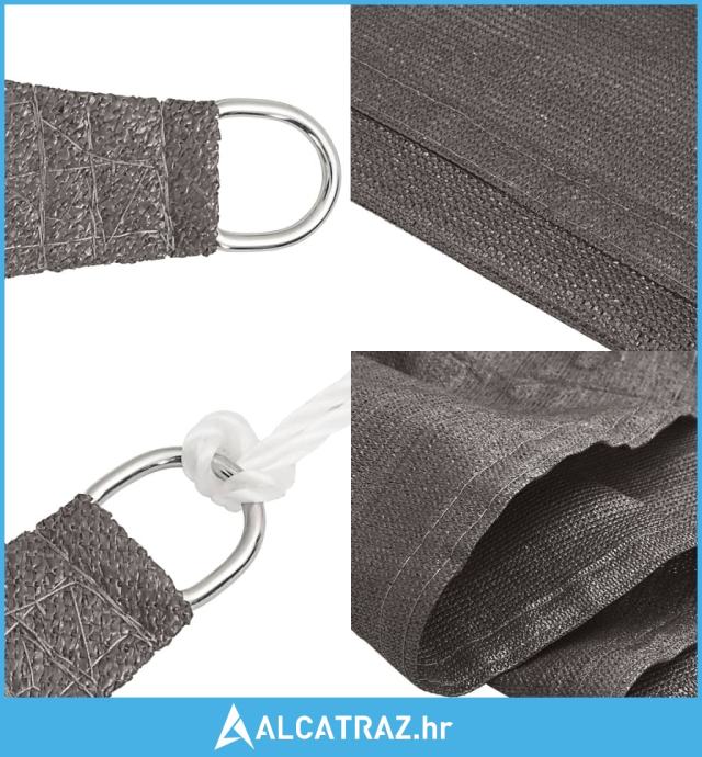 Ovo jedro protiv sunca, napravljeno od 100 % HDPE-a (polietilen visoke gustoće), štiti vas od izravne sunčeve svjetlosti, omogućuje dovoljno vjetra i vodopropusno je. HDPE je posebno obrađen, tako da je otporan na plijesan i UV zrake. Sjenilo se lako sastavlja pomoću pričvršćivača od nehrđajućeg čelika u svakom kutu te uključenih konopa.