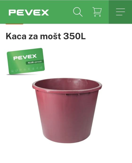 Kaca za mošt kapaciteta 350 litara idealna je za vinogradare i vinare koji žele kvalitetno i sigurno skladištiti mošt tijekom procesa fermentacije. Izrađena od visokokvalitetnog materijala, ova kaca osigurava dugotrajnost i otpornost na habanje. Veliki kapacitet od 350 litara omogućuje obradu većih količina mošta, čineći je savršenim izborom za profesionalnu i amatersku upotrebu.