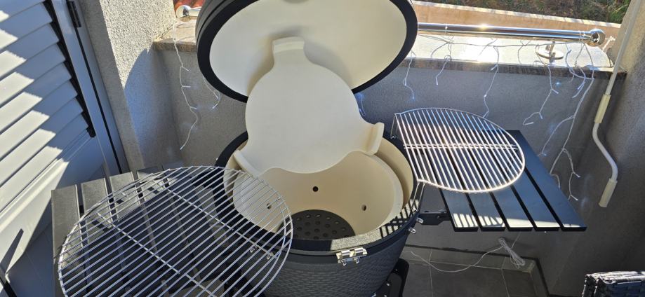 Prodajem navedeni rostilj nov. Dolazi uz defletor topline i dodatnu rešetku na pecnje u novioima. Sirine je 61cm. Moguce preuzimanje na Krku ili Velika Gorica.