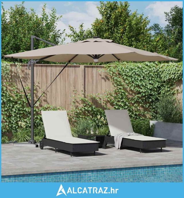 Kantilever Roma Suncobran s LED-ovima Taupe 286x285x270 cm Aluminij -