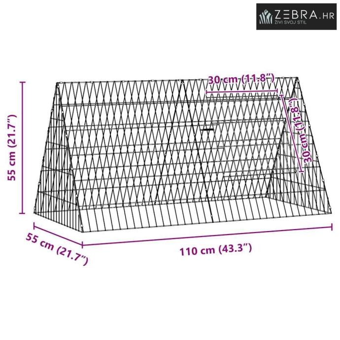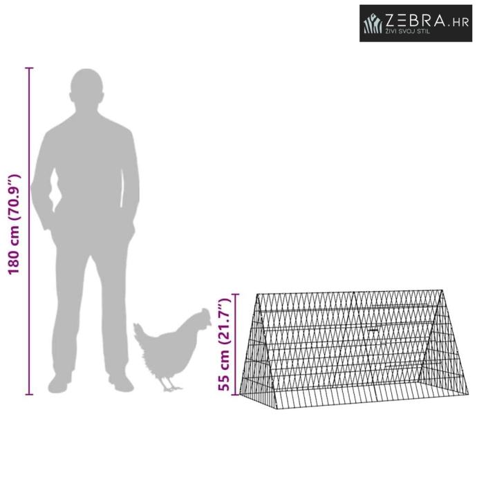 Pocinčana čelična konstrukcija Ovaj kavez za kokoši napravljen je od kvalitetnog pocinčanog čelika, otporan na vremenske uvjete, što osigurava da će ostati u dobrom stanju kroz sve godine. Njegova robusna struktura stvorena je da izdrži teškoće vanjskog okruženja, dajući vam osjećaj sigurnosti za vaše kokoši.
