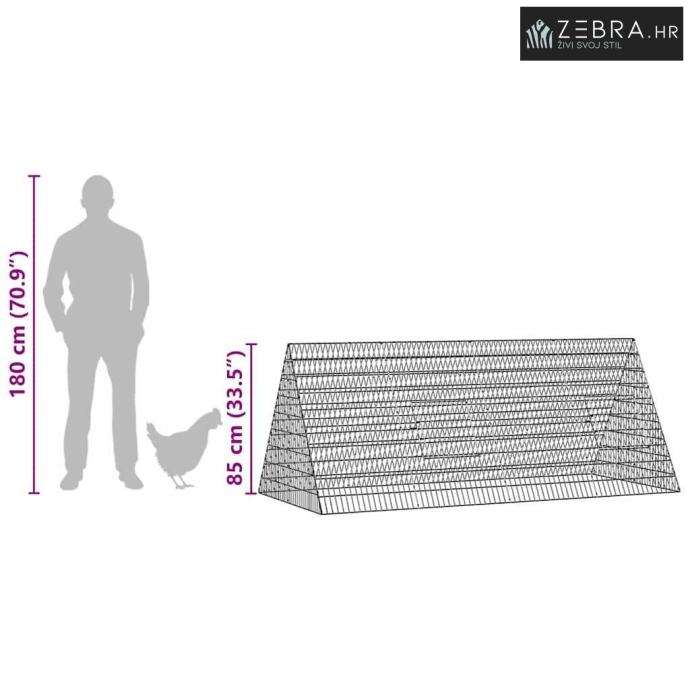 Pocinčana čelična konstrukcija Ovaj kavez za kokoši napravljen je od kvalitetnog pocinčanog čelika, otporan na vremenske uvjete, što osigurava da će ostati u dobrom stanju kroz sve godine. Njegova robusna struktura stvorena je da izdrži teškoće vanjskog okruženja, dajući vam osjećaj sigurnosti za vaše kokoši.