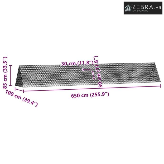 Sveukupne dimenzije: 650 x 100 x 85 cm (D x Š x V)