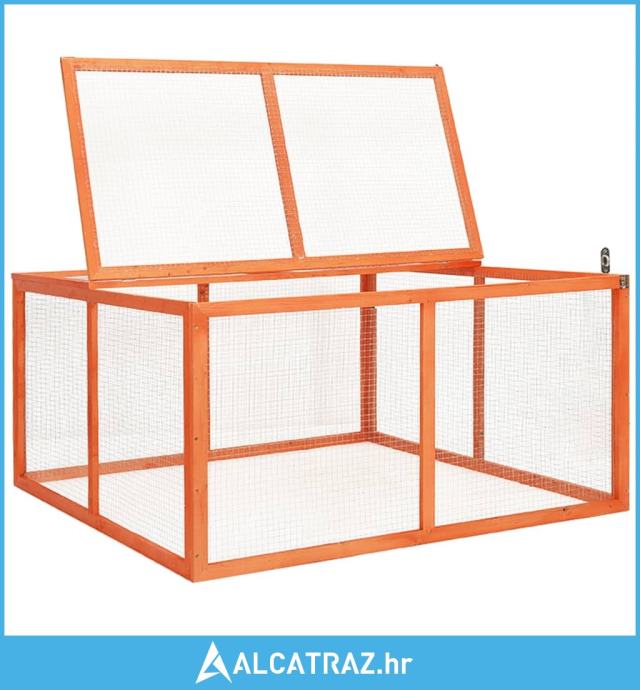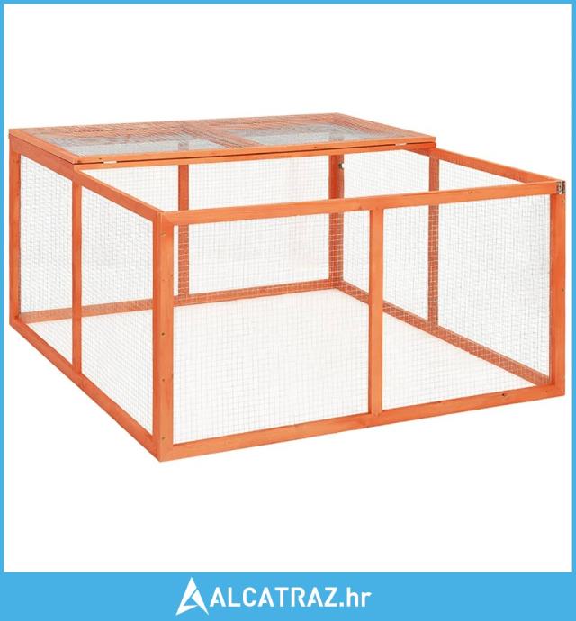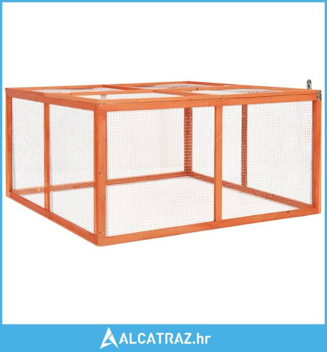 Ova vanjska ograda za zečeve sastoji se od čvrstog okvira od jelovine i konstrukcije od čelične žičane rešetke koja se može brzo i jednostavno postaviti u vrtu. Nudi obilje svježeg zraka i sunčeve svjetlosti, što je vrlo blizu prirodnom načinu života. Ova nastamba za životinje potpuno je prekrivena krovom koji se može otvoriti s jedne strane, što sprječava iskakanje vaših zečeva i služi kao zaštita od grabežljivaca. Ovaj kavez za male životinje nudi dovoljno slobode kretanja kako bi se osigurala dobrobit životinja.