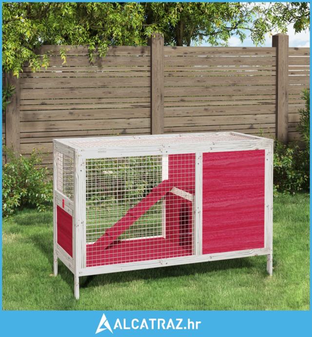 Kavez za zečeve crveni 103 x 44 x 69,5 cm od masivne borovine - NOVO