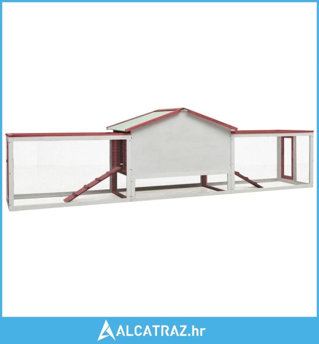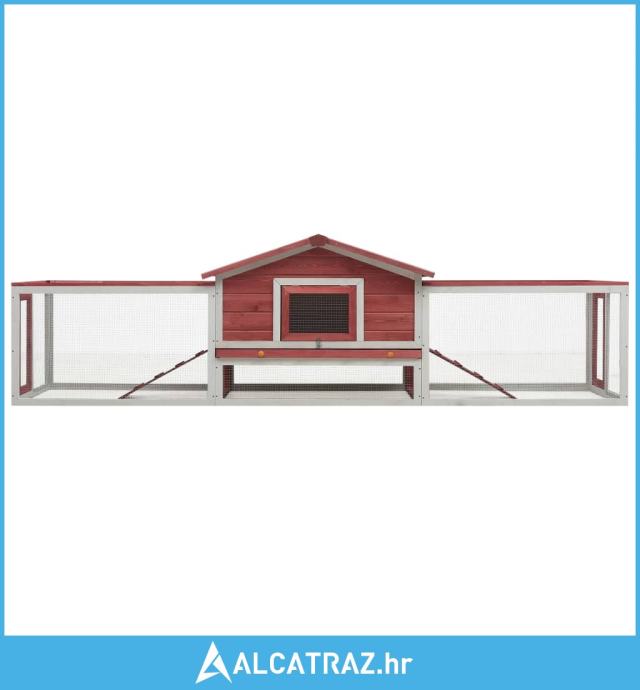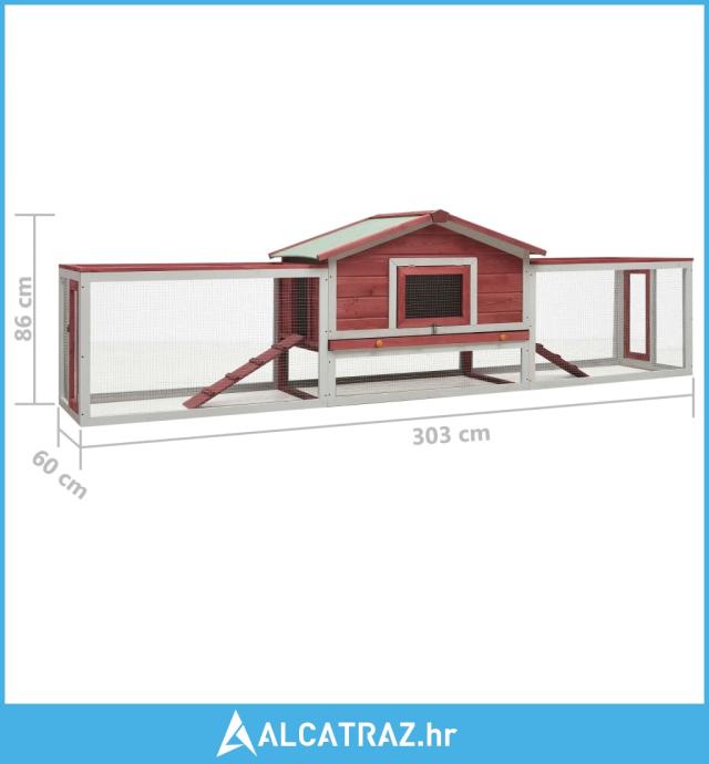 Kavez za zečeve crveni 303x60x86 cm masivna borovina i jelovina - NOVO