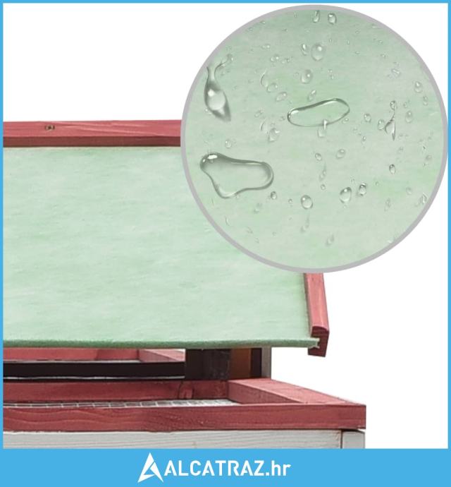 Ovaj kavez za zečeve pruža obilje prostora za vježbanje, dok čvrsta željezna žičana mreža pomaže spriječiti nestašno ponašanje i neočekivane nesreće. Osim toga, konstrukcija od željezne žičane rešetke osigurava vam nadzor nad ljubimcima i omogućuje im da dobiju dovoljno svježeg zraka. Kavez za zečeve izrađen je s visokokvalitetnim drvenim okvirom, što ga čini snažnom i sigurnom nastambom koja traje godinama. Njegov zeleni krov čuva od kiše, a udobna kućica savršeno je mjesto za spavanje. Rampa za laki uspon vodi od prizemlja do gornjeg kata. Ladica koja se izvlači olakšava čišćenje. Vrata se lako zatvaraju i zaključavaju pomoću kliznih zasuna s vijcima.