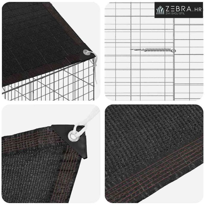 Galvanizirani čelik: Kavez je napravljen od kvalitativnog galvaniziranog čelika, što jamči dugotrajnost i otpornost na teške vremenske uvjete. Materijal je poznat po svojoj snazi, a njegov lijep srebrni finiš dodaje dojam stila vanjskom prostoru bez kompromisa na izdržljivost.