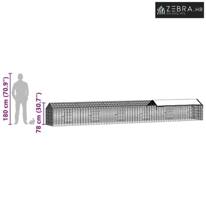 Ovaj moderni kavez za zečeve napravljen je za ljubitelje vanjskog prostora koji žele osigurati najbolje za svog ljubimca. Izrađen je od galvaniziranog čelika, spaja praktičnost s stilom i savršeno se uklapa u svaki vrt. Nudi ugodno i bezbrižno stanište za vaše zečeve, s tim da je otporan na vremenske uvjete i osigurava sigurno sklonište kroz sve sezone.