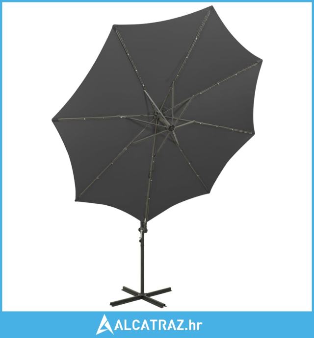 Konzolni suncobran sa stupom i LED svjetlima 300 cm antracit - NOVO