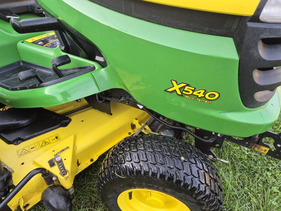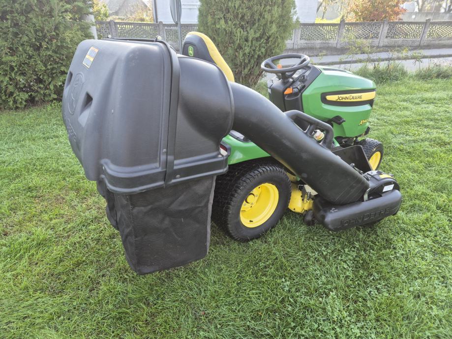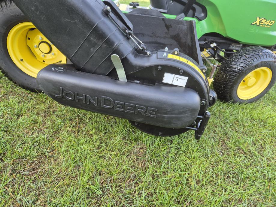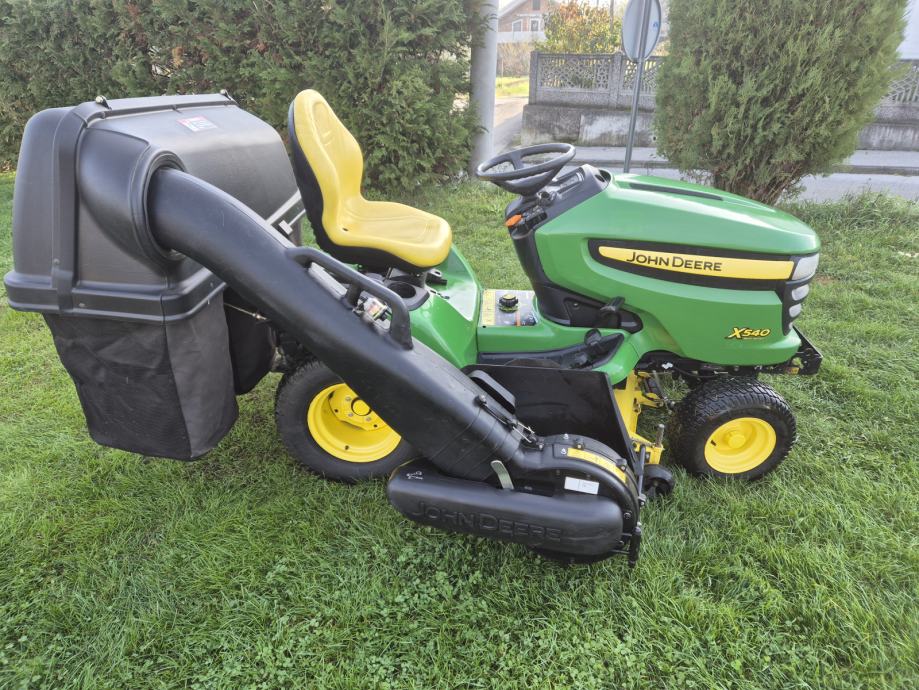 Kosilica John Deere X540, super stanje, hidrostat pogon, tempomat, servo volan, hidraulično podizanje i spušnje kose, blokada diferencijala, Kawasaki motor- vodeno hladenje 19.4 kW, kosa širine 137 cm, ugraden set za finu košnju, roto turbina za punjenje vreča, 3 vreče za sakupljanje trave, kuka za prikolicu, godina proizvadnje 2011, 1000 radnih sati, korišten za košnju nogometnog igrališta,
